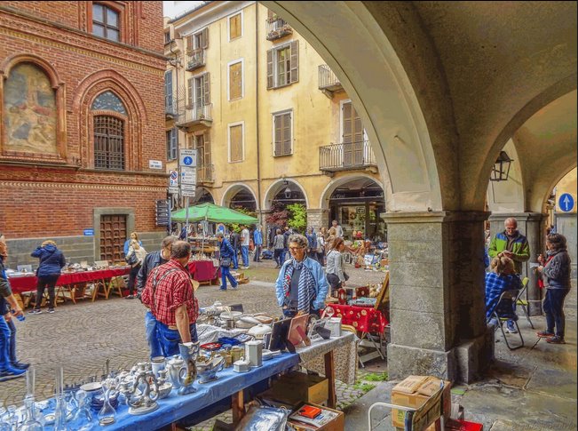 La fotografia riprende una scena di un mercatino.
